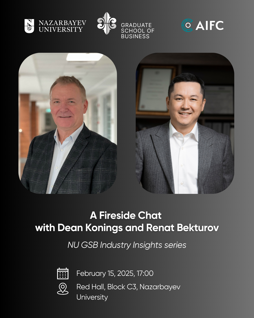 The Nazarbayev University Graduate School of Business (NUGSB) is pleased to invite students and faculty to an exclusive interview with Renat Bekturov, Governor of the Astana International Financial Centre (AIFC), hosted by the Dean of NUGSB.