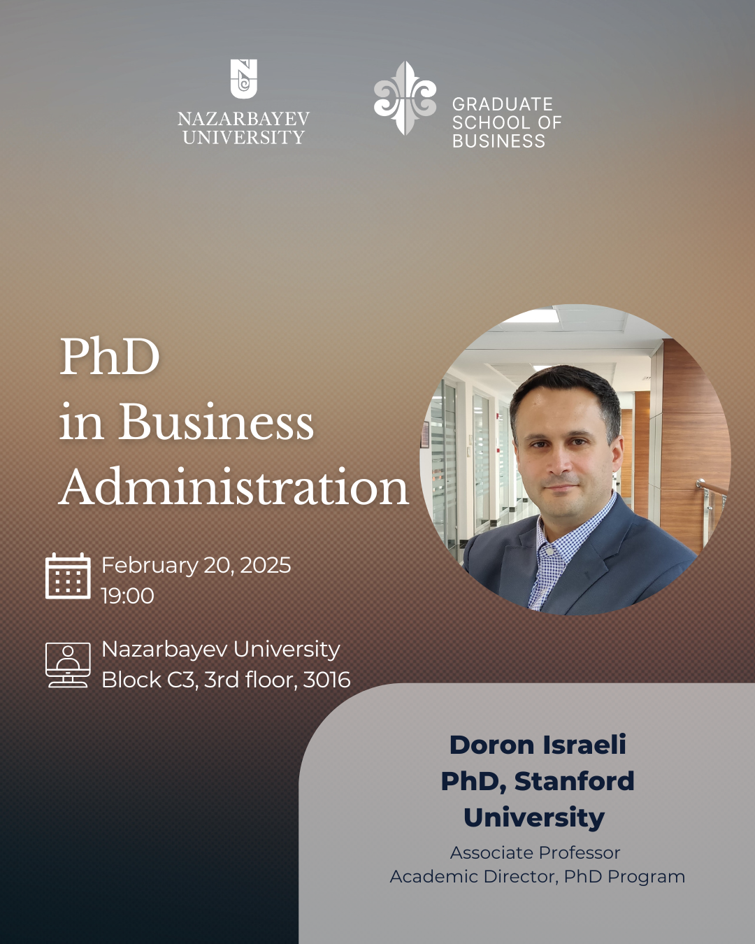 We are thrilled to invite you to a special event hosted by the Graduate School of Business (GSB) on February 20 at 19:00. This PhD info-session is a great opportunity to learn more about our PhD in Business Administration program and what it takes to embark on a doctoral journey.